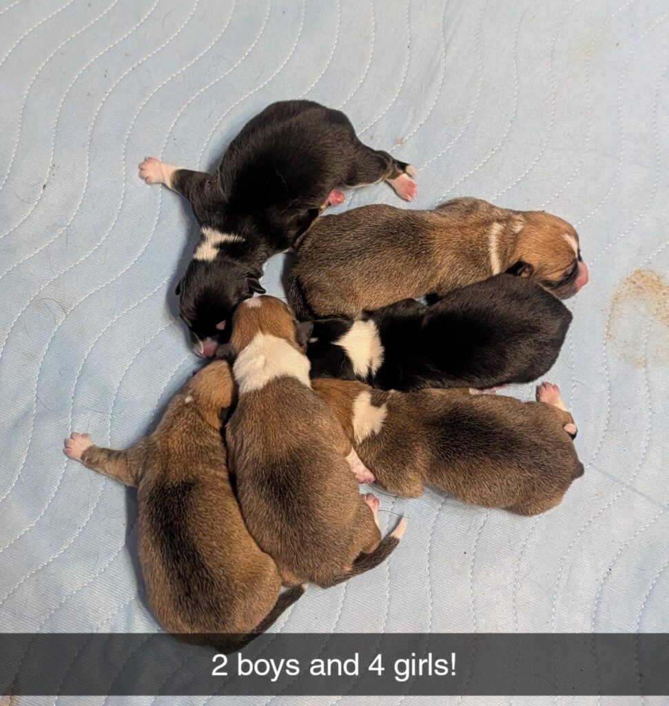 We are excited to announce that Ginger and Klyde have had a litter. We have 6 puppies that were born 9-29-25. 4 female and 2 male. Please check out the current litter page to see more pictures.